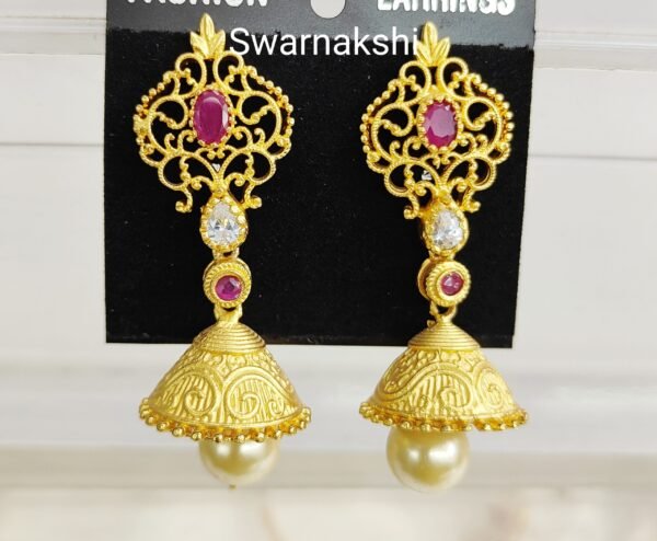 CZ Jhumkas with price with ruby stone step model