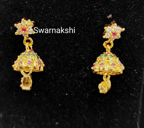 Imitation ruby emerald line cz mesh peacock jhumkas