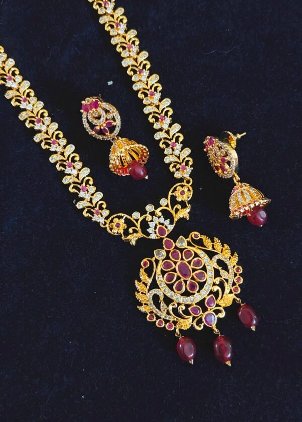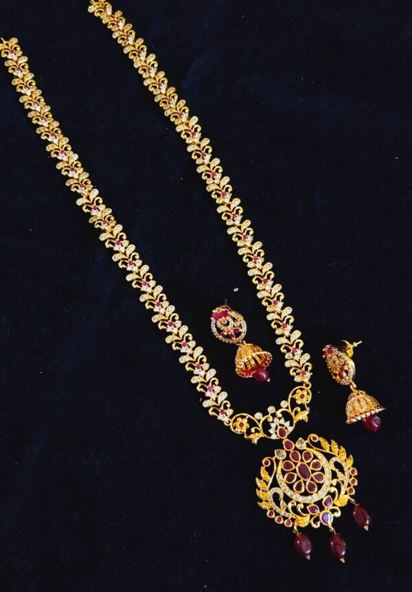 1 gram gold long chain designs with price ruby and emerald stones long haram and long necklace