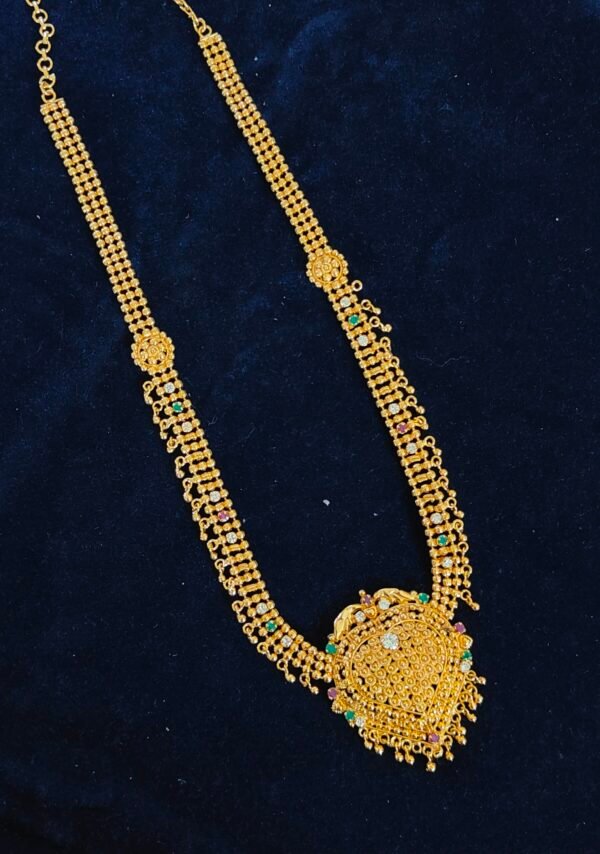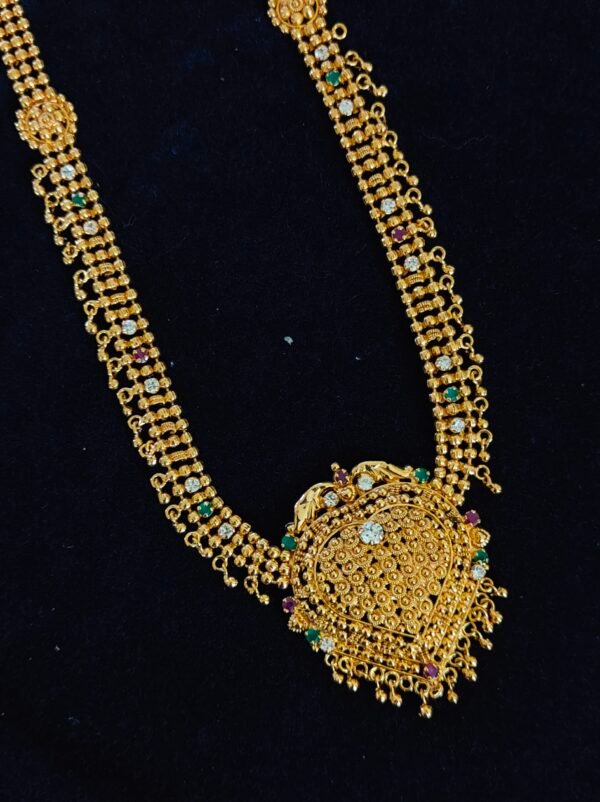 Be the first to review “One gram gold long haram with muvvalu design long necklace”