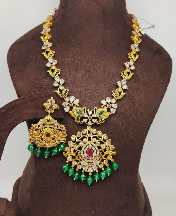 1 gram gold cz ruby emerald stone floral necklace