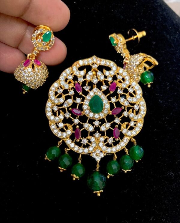 Be the first to review “One gram gold pendant with small jhumkas bead drops”