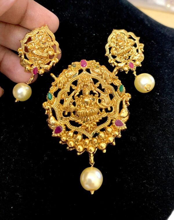One gram gold pendant with small jhumkas bead drops