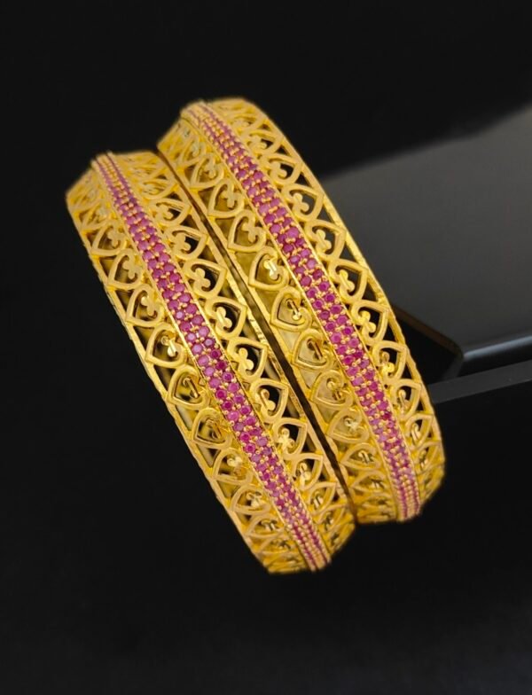 One gram gold ruby bangles 2.10 size with heart design