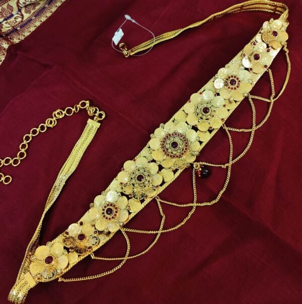 One gram gold waist chain kasu design pattern