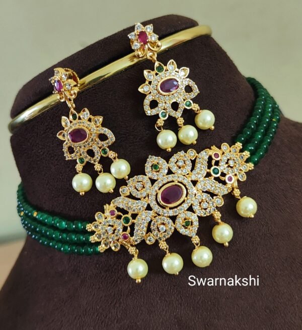 Be the first to review “Onyx beads choker Cz pendant with earrings set”