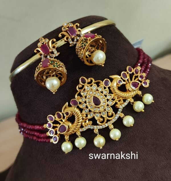 Be the first to review “Onyx beads Peacock design matt finish pendant with jhumka earrings”