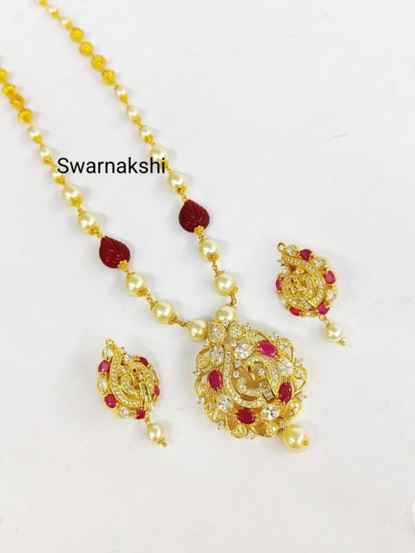 Pearl chain designs with pendant uncut stone model