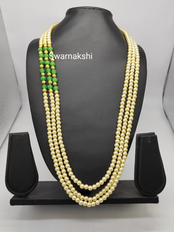 Pearl chain online with green beads and golden balls 3 layer model