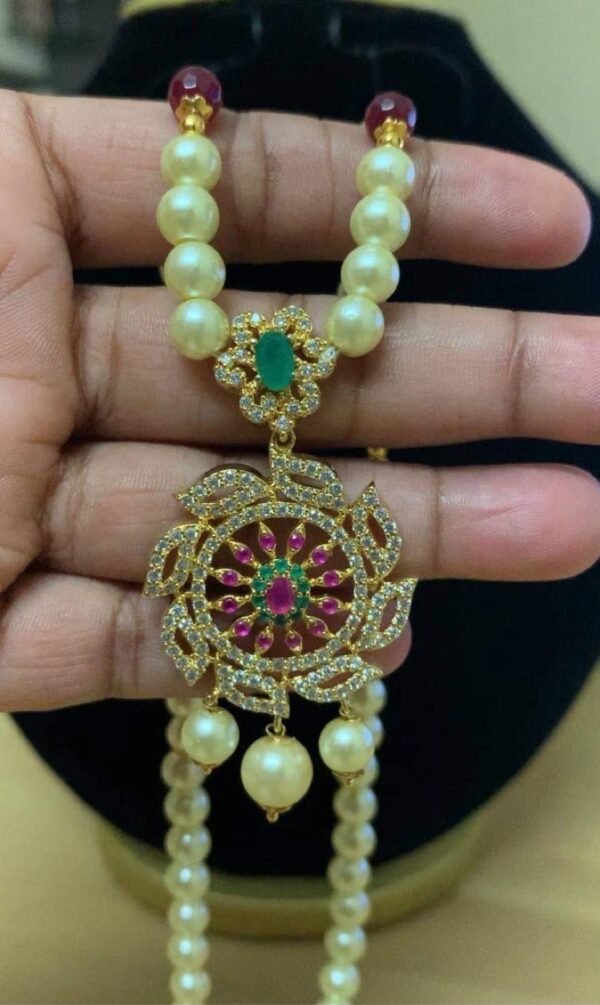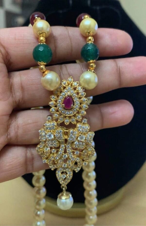 Be the first to review “Pearl chains online elegant look CZ stone pendant 18 inch”