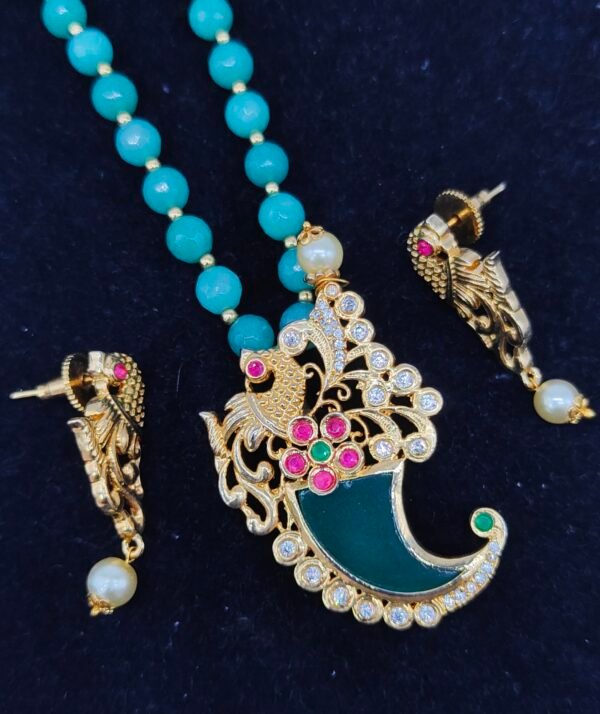 Be the first to review “puligoru beads chain designs with peacock model pendant and earrings”