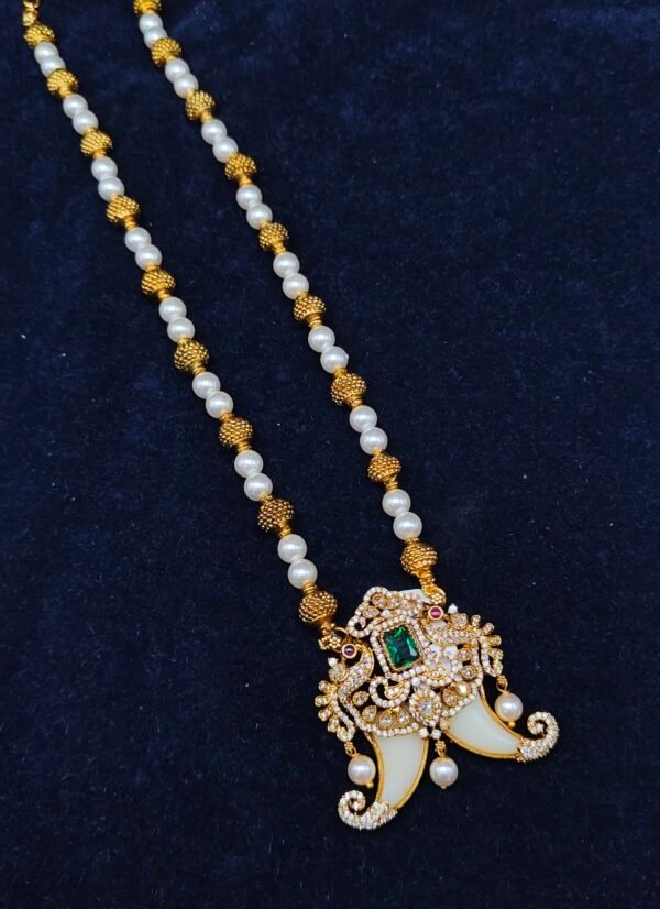 pink beads jewellery with Victorian pendant middle ruby stone model