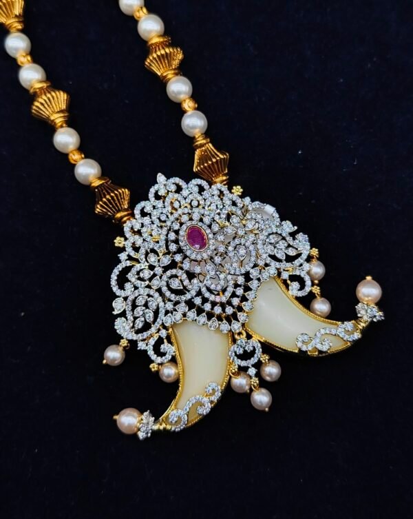 pink beads jewellery with Victorian pendant middle ruby stone model