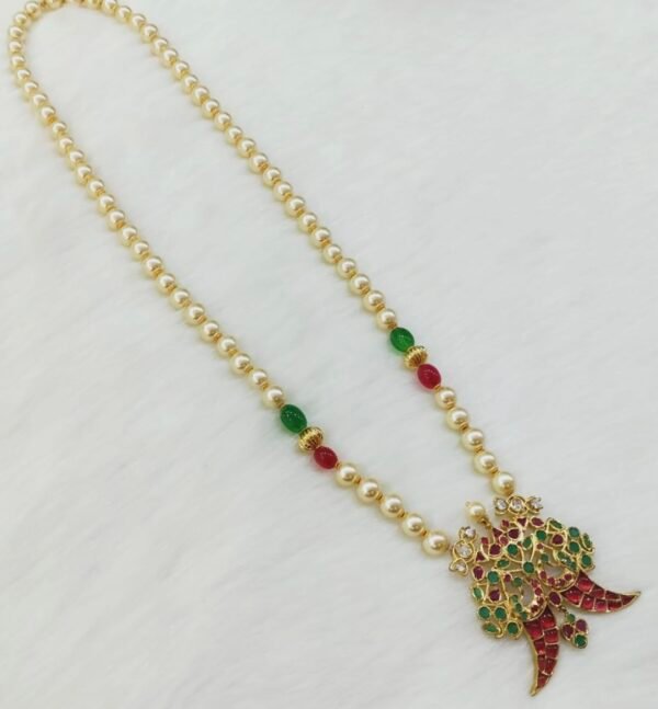 Pearl chain designs with pendant uncut stone model