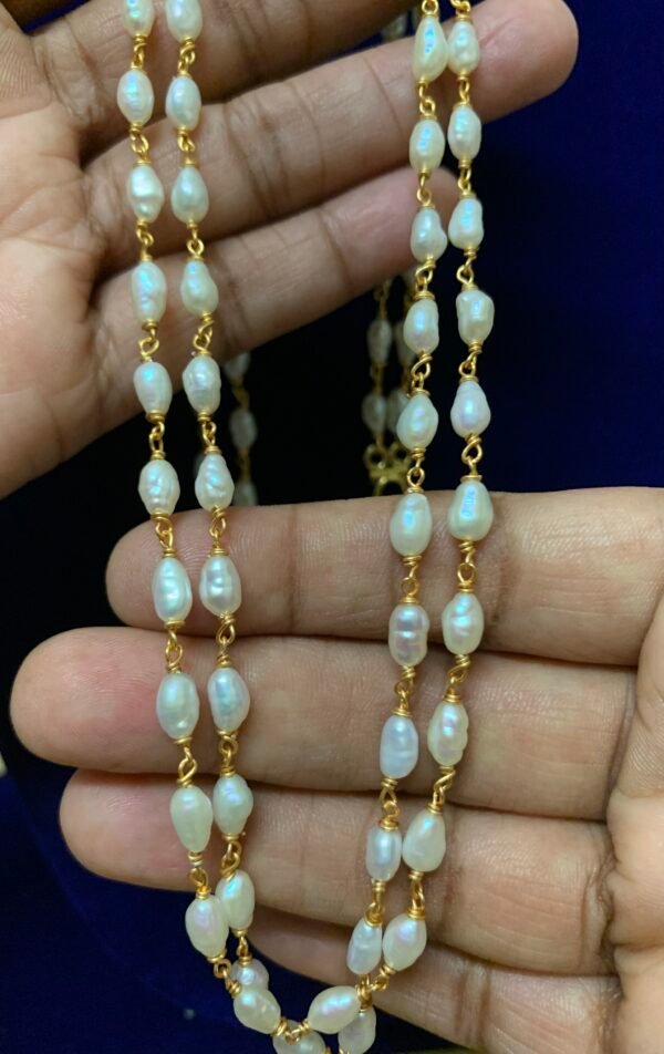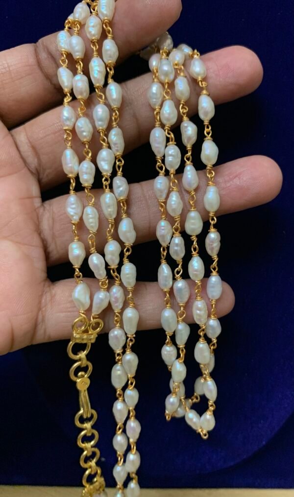 Item Description : Silver Fresh water Rice pearl chain size of pearl approx 4-6 mm