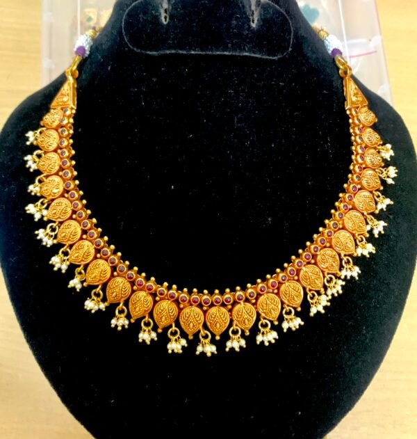 Item Description : 92.5 silver gold plated traditional design necklaces with bead pearl model