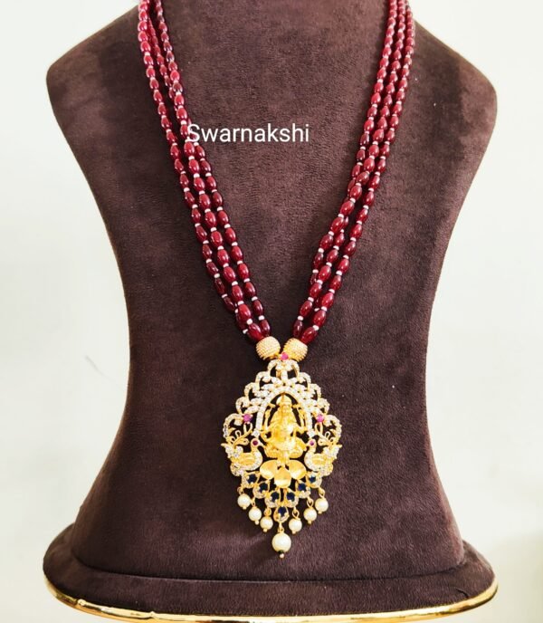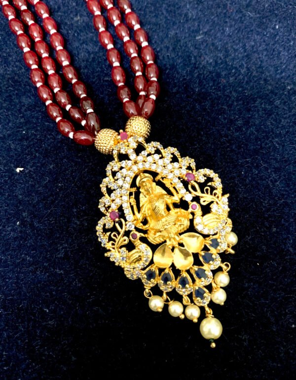 Be the first to review “Red beads jewelry Cz stone lakshmi pendant model buy online”