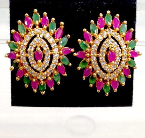 Cz ear rings with cut stones & emerald stones studs model ear rings