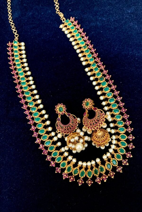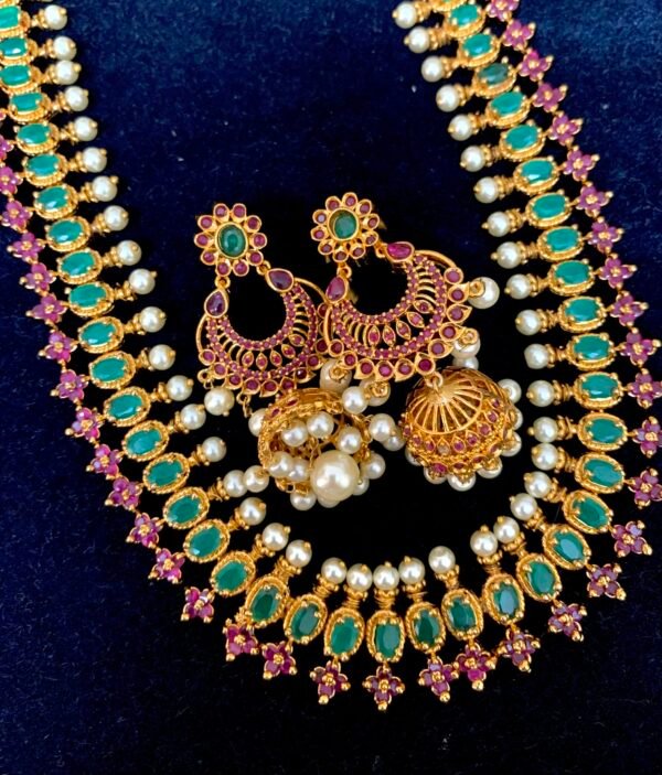 Be the first to review “Ruby emerald long haram designs grand look model with big Jhumkas”