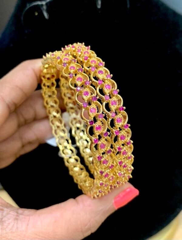 One gram gold bangles price 2.4 size heavy look cz stones model