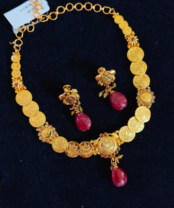 Red matte finish guttapusalu kasu necklace online shopping Matt design guttupusalu model