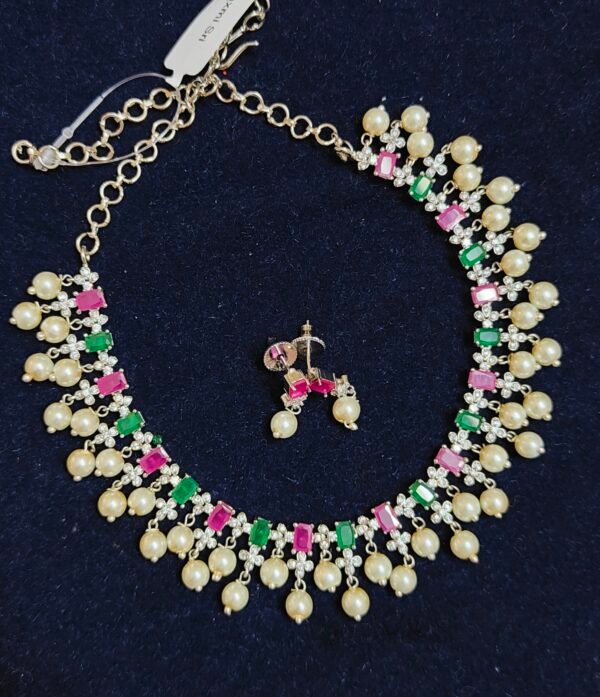 1 gram gold cz ruby emerald peacock chandbali necklace