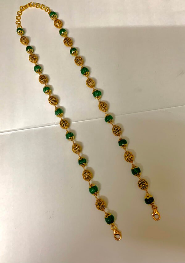 Silver Nakshi Ball chain with green pumpkin beads 22 inch