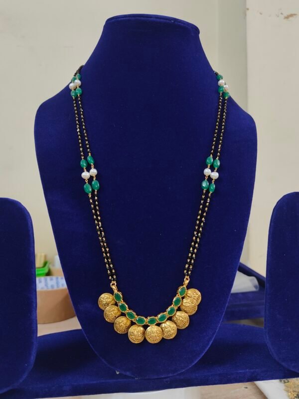Be the first to review “Silver black beads chain with kasu pendants design 24 inch”