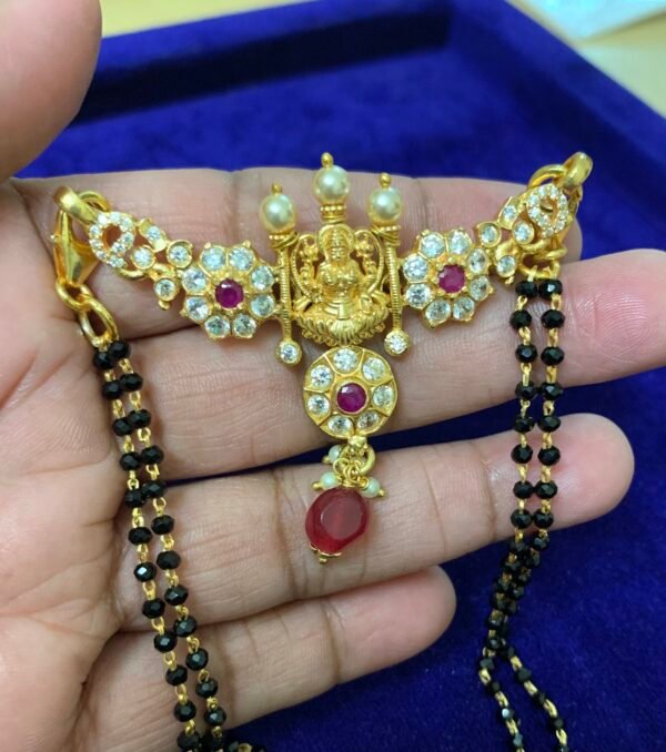 Item Description : 925 Gold plated silver black bead with lakshmi pendant