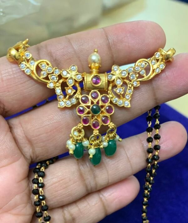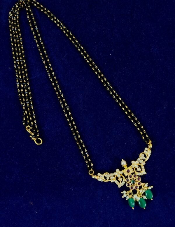 silver lakshmi black beads pendant floral design pattern