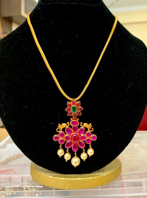 Item Description : Silver gold plated Ruby stones pendant with chain