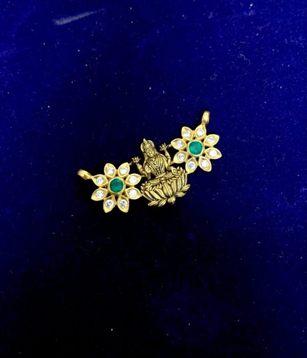 Be the first to review “silver lakshmi black beads pendant floral design pattern”