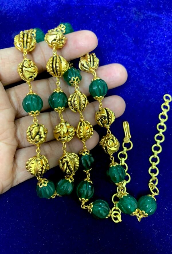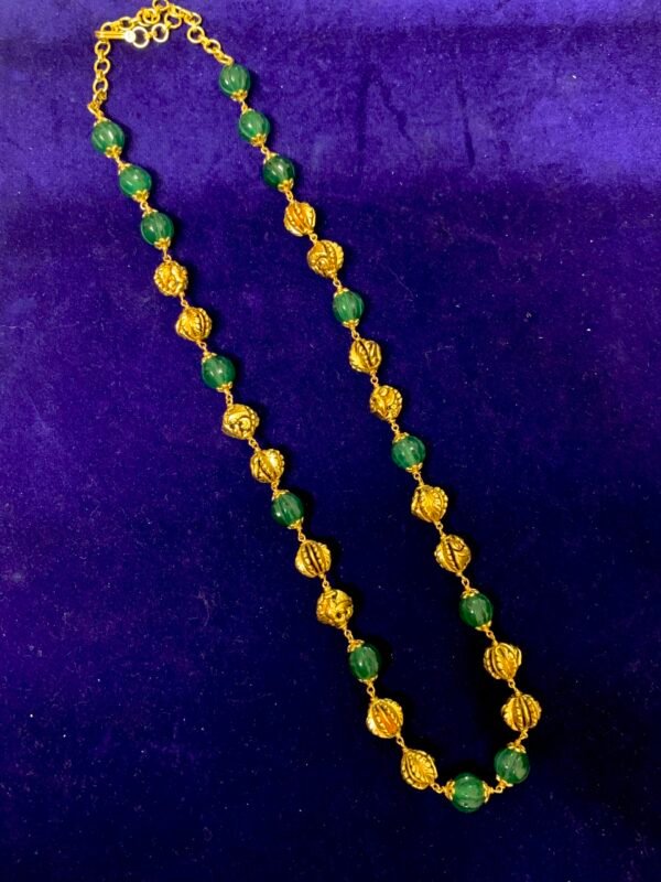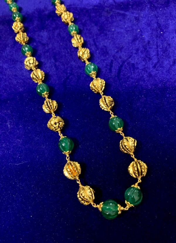 Item Description : Silver Nakshi Ball chain with green pumpkin beads 22 inch