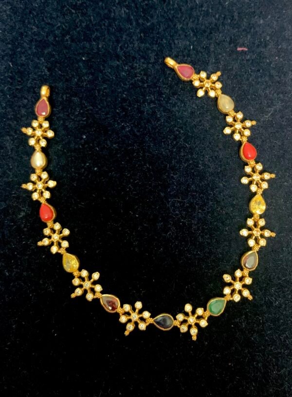 Item Description : 92.5 silver gold plated Navaratna stone design necklaces model