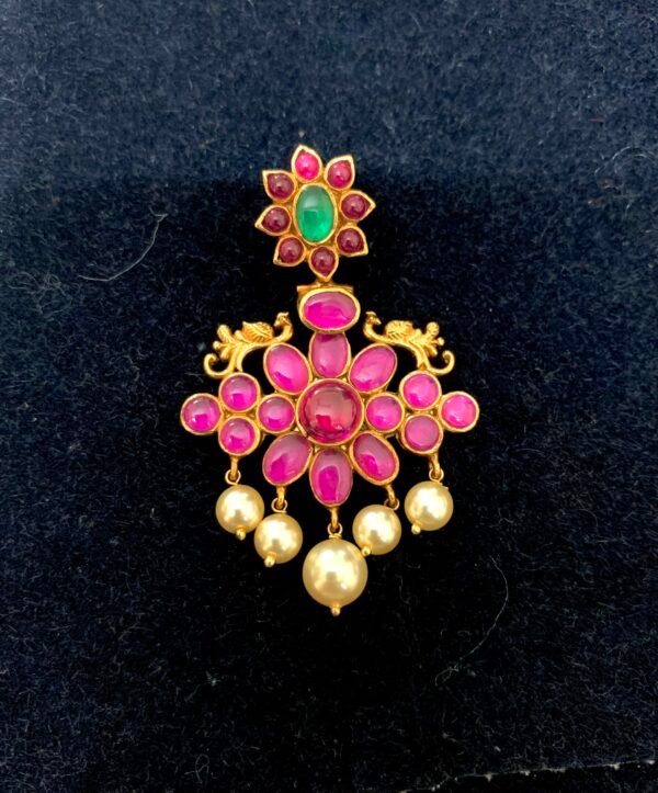 Item Description : Ruby stone very beautiful Gold polished Silver pendant with pearl drops