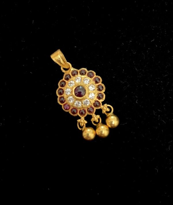 Item Description : Gold polished Silver pendant with pearl drops CZ and ruby stones