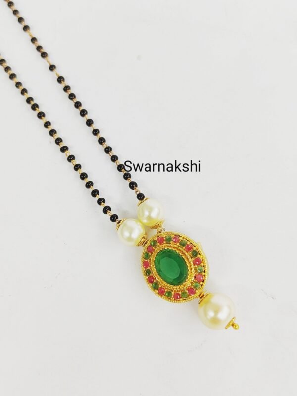 Be the first to review “Simple black beads mangalsutra with emerald stone pendant”