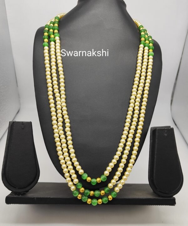 Beads chain designs long green colour onyx 3 layer model