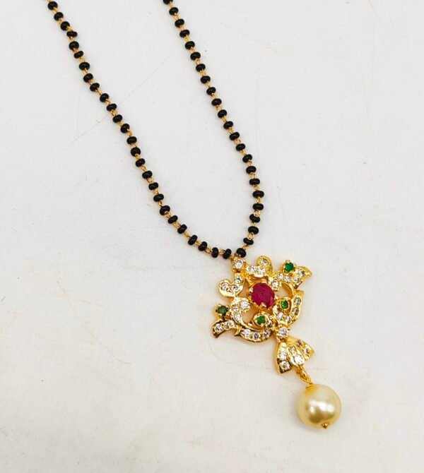 Be the first to review “Traditional mangalsutra with black beads and cz pendant”