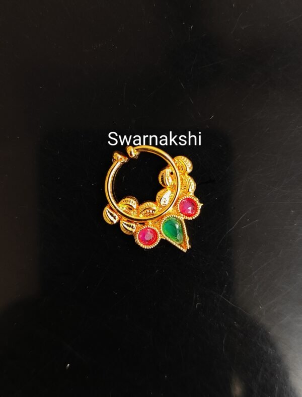 Be the first to review “Traditional ruby emerald leaf nose nath”