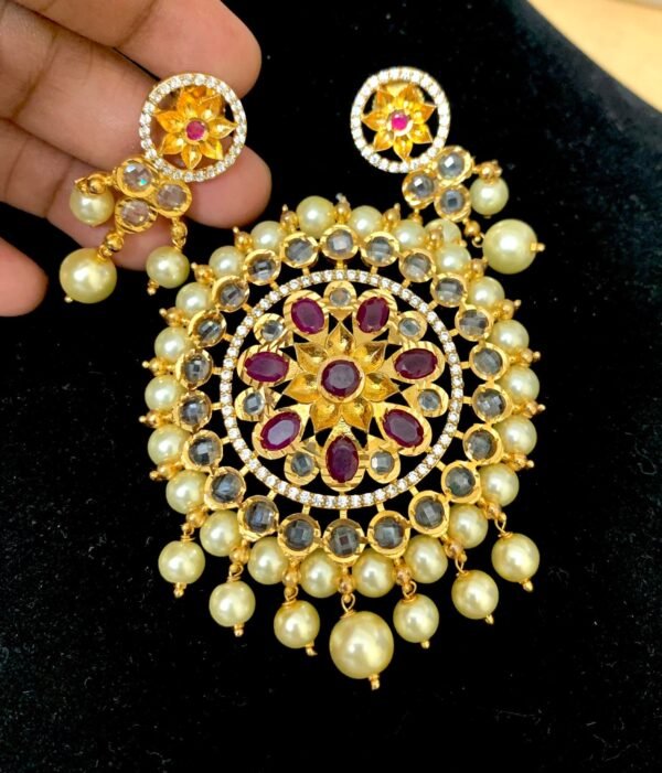 Be the first to review “Uncut stone pendant set large size with pearl border ruby stone design” Cancel reply