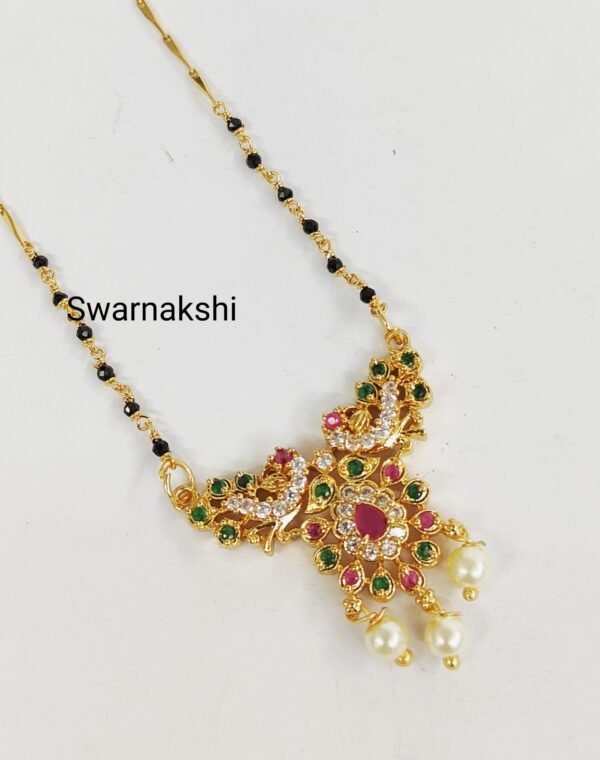 Be the first to review “Unique mangalsutra designs with multi colour stones and large peacock pendant / black beads”