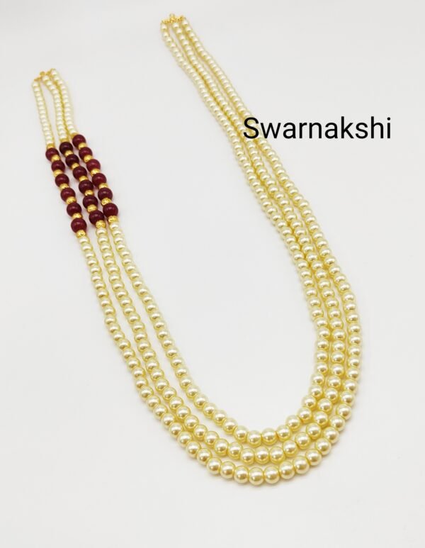 Wedding jewellery for groom 3 layer pearl model with maroon beads