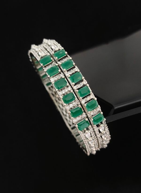Women’s ad bangles Emerald stone silver polish beautiful design 2.8 size