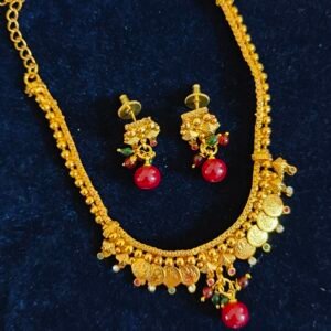 One gram gold choker Middle green stone guttapusalu model