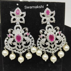 ad stone earrings online ruby and peacock design chandbali model