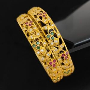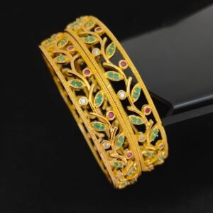 1 gram gold bangles 2.10 size with emerald stones and leaf design