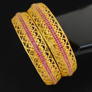 One gram gold ruby bangles 2.10 size with heart design