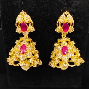1 gram gold cz ruby stone star floral jhumkas